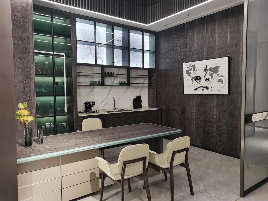 在展厅现场,各系列展厅极具潮流感的空间布局和场景设计,完美呈现了当下流行的空间组合和软装搭配思维;极具时尚品位的产品设计和色彩运用,赋予产品个性鲜明、多元混搭的时尚气质,彰显了米兰体育“整装定制·全案设计”产品整合优势和特色。